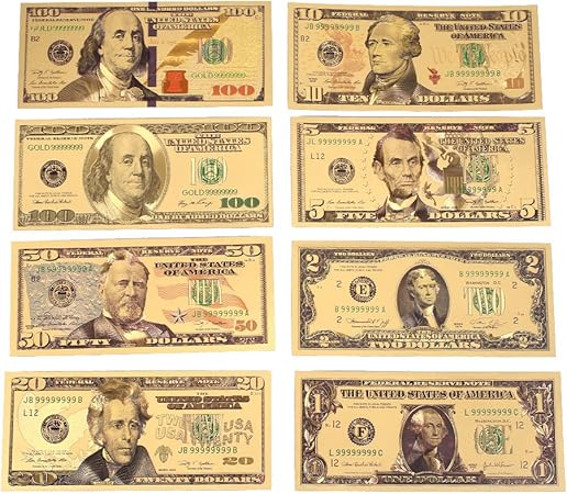 Foglio D Oro 24k Banconota I Soldi Dollaro Americano 1 100 Dollari Denaro In Oro Set Di 7 Banconote Amazon It Casa E Cucina