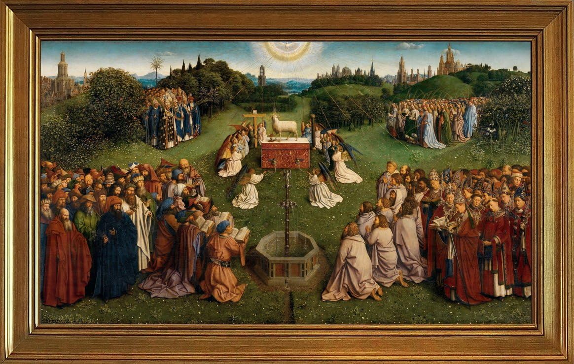 Amazon Com Berkin Arts Framed Jan Van Eyck Giclee Canvas Print Paintings Poster Reproduction The Ghent Altarpiece Adoration Of The Mystic Lamb Posters Prints
