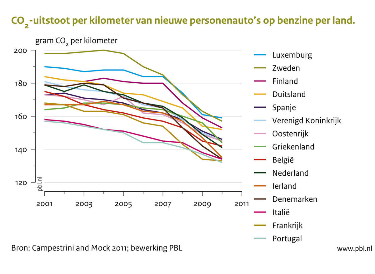 Co2 Uitstoot Per Kilometer Van Nieuwe Personenauto S Op Benzine Per Land