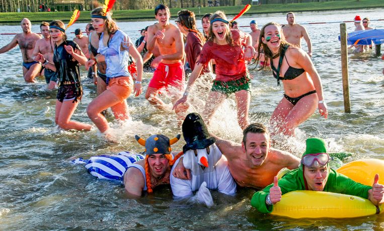 Duizendtal Ijsberen Springt Zondag In Vijver De Ster Eerst Door Tunnel Van Vuur Om Het Ijskoude Water Te Bereiken Sint Niklaas In De Buurt Hln