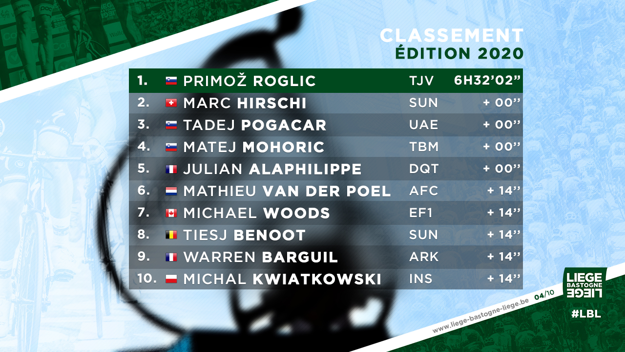 Liege Bastogne Liege On Twitter Top 10 Lbl 2020 Rogla Marchirschi Tamaupogi Le Reste Du Top 10 Rest Of The Top 10