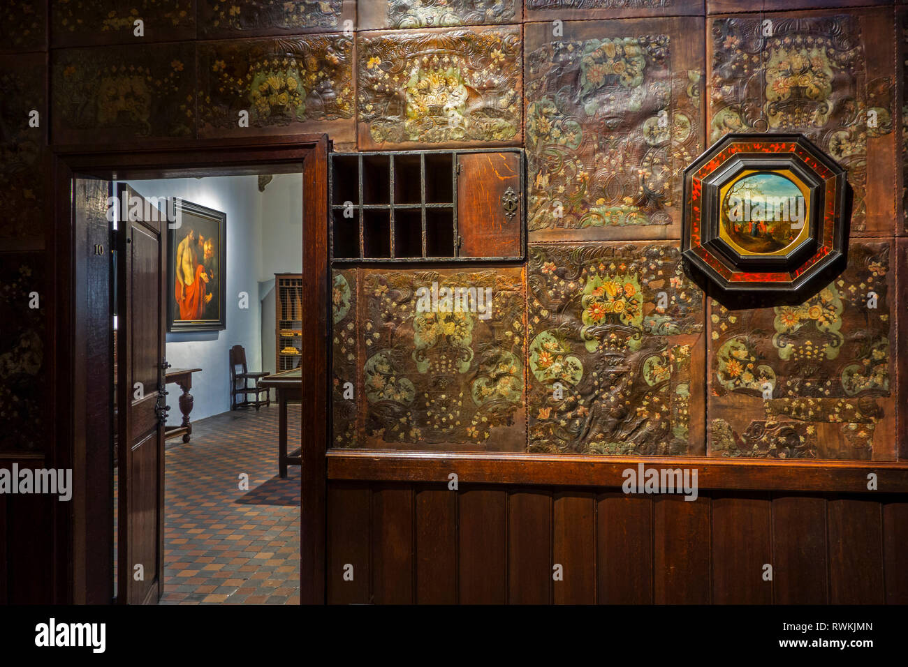 Gold Leather Hangings In Office At The Plantin Moretus Museum Plantin Moretusmuseum About 16th Century Printers Antwerp Belgium Stock Photo Alamy