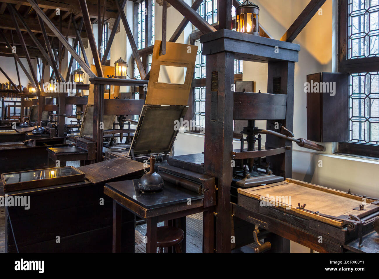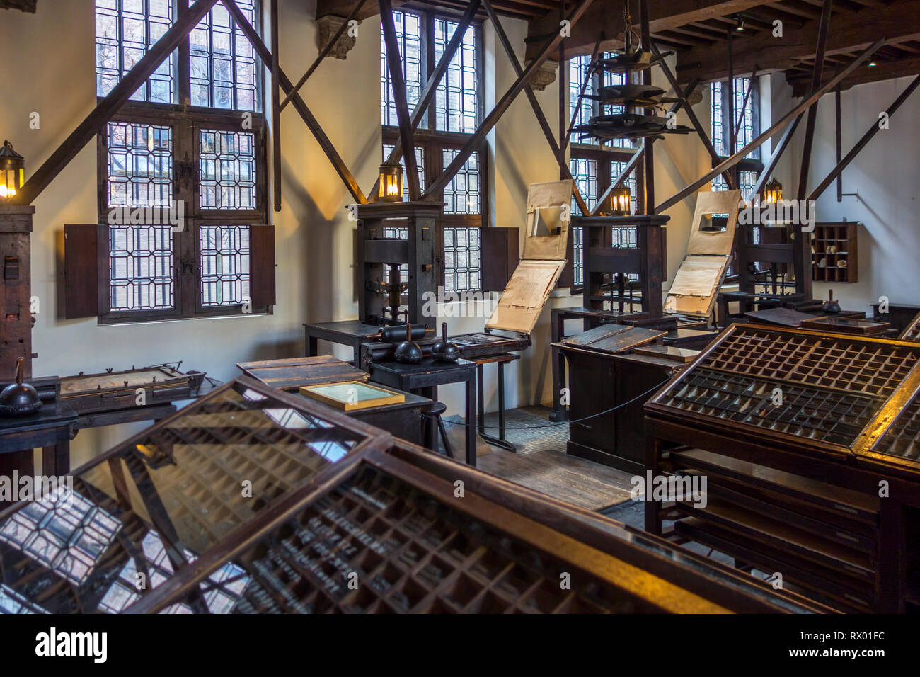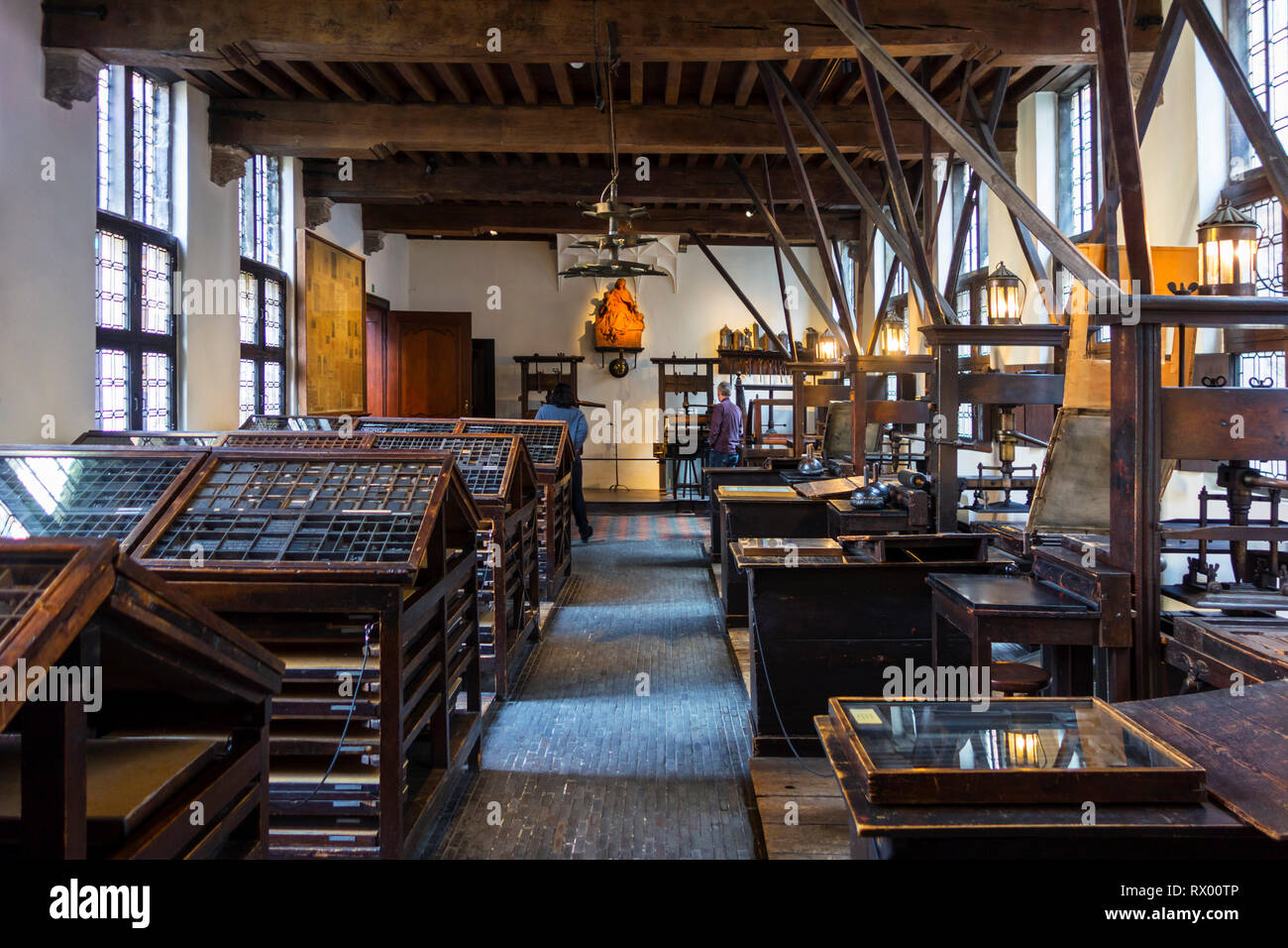 Print Shop Showing 18th Century Type Cases And 17th Century Printing Presses In The Plantin Moretus Museum Plantin Moretusmuseum Antwerp Belgium Stock Photo Alamy