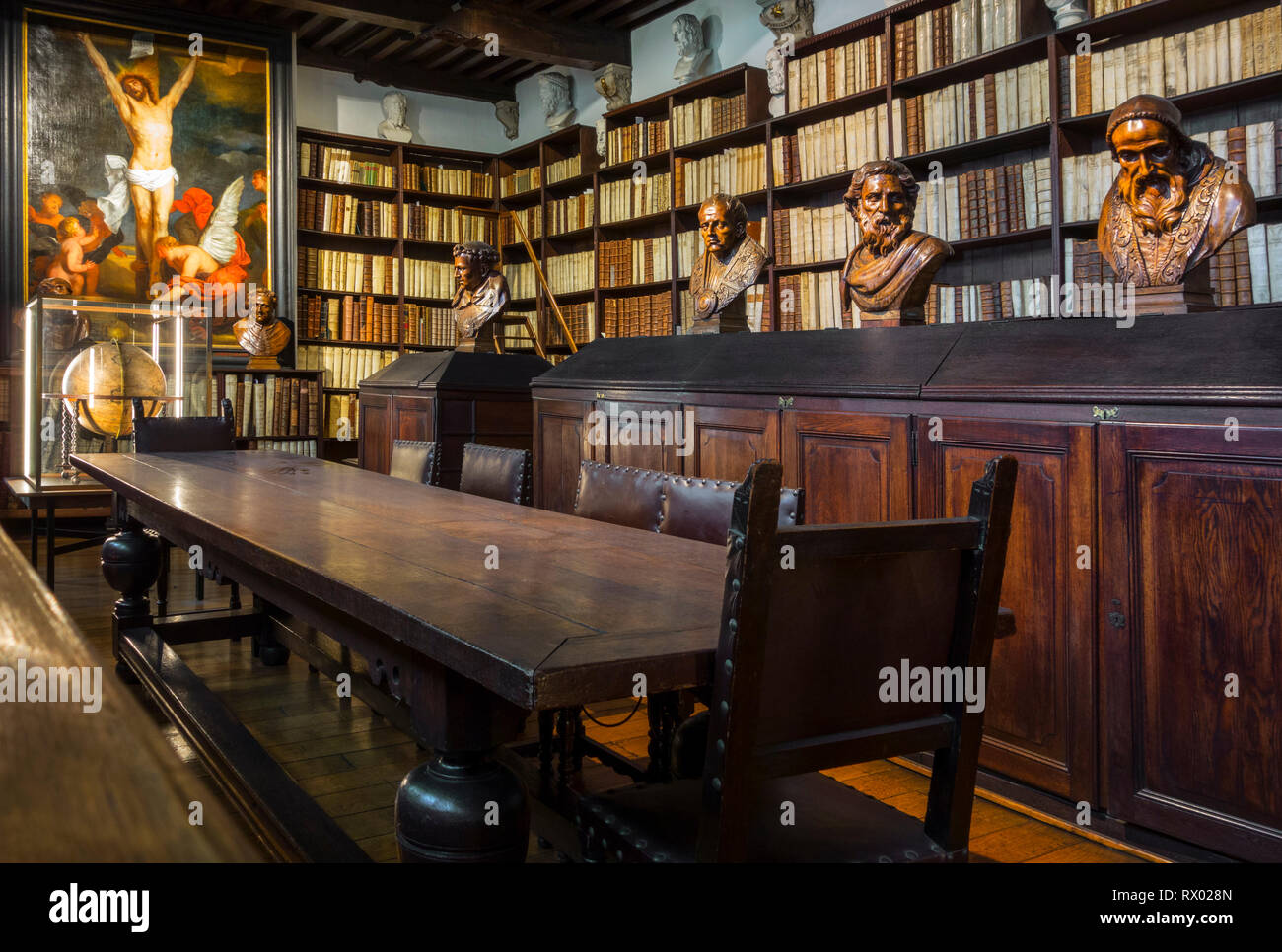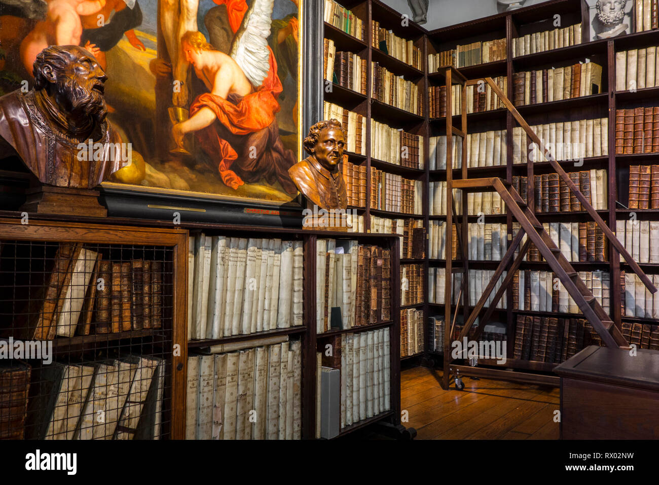 Bookshelves With Old Books In The 17th Century Great Library At The Plantin Moretus Museum Plantin Moretusmuseum Antwerp Flanders Belgium Stock Photo Alamy